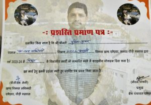पौड़ी।बिजली विभाग के एसडीओ,सतपुली ई.मुकेश कुमार को एकेश्वर खंड विकास अधिकारी और प्रमुख क्षेत्र पंचायत ने ब्लाक एकेश्वर सभागार में विधुत विभाग (उपाकालि०) द्वारा किये गये विकास कार्यों व उपभोक्ता शिकायतों के तीव्र समाधान और उत्कृष्ट कार्यों के लिए सम्मानित।खण्ड विकास स्तर पर उप खण्ड अधिकारी सतपुली ई० मुकेश कुमार को प्रशस्ति पत्र प्रदान करते हुए सम्मानित किया गया।बिजली विभाग के एसडीओ को सम्मान मिलने पर विभागीय अधिकारी/ कर्मचारियों सहित कई लोगो ने उन्हे बधाई दी।