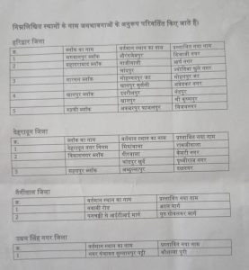 देहरादून।मुख्यमंत्री धामी द्वारा सोमवार एक महत्वपूर्ण फैसला लेते हुए जनपद हरिद्वार, देहरादून, नैनीताल और उधम सिंह नगर में स्थित विभिन्न स्थानों के नाम में परिवर्तन की घोषणा की गई।